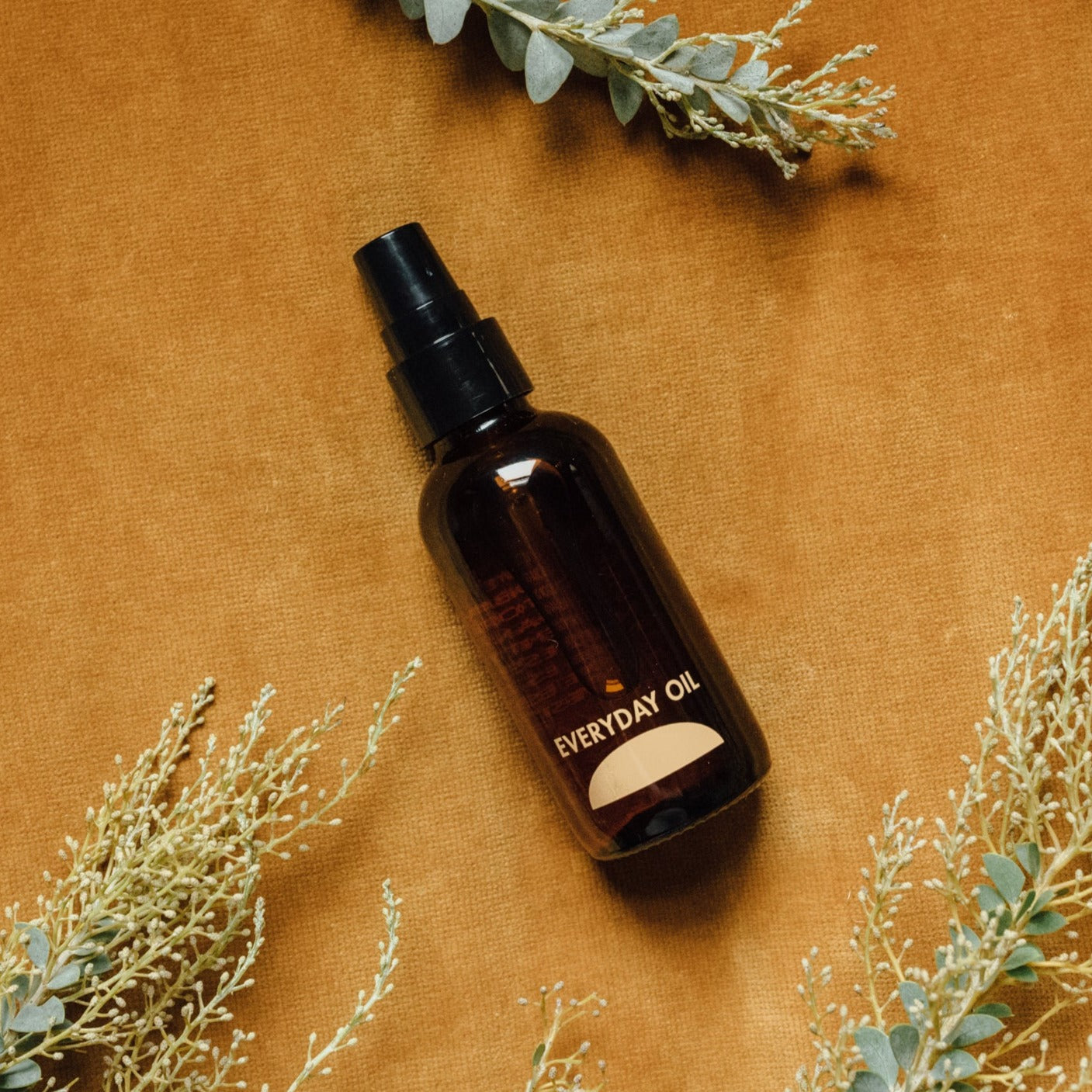 Everyday Oil is cleansing, healing + moisturizing. Carefully formulated for balance, it has a beautiful texture that absorbs easily and imparts a dewy glow. It can also be used as a make-up remover, deep conditioner, beard oil, cuticle oil, natural insect repellent, after-sun, after-surf, after-shave, bath soak, massage oil, to help prevent stretch marks, as a nursing salve or wherever you need.